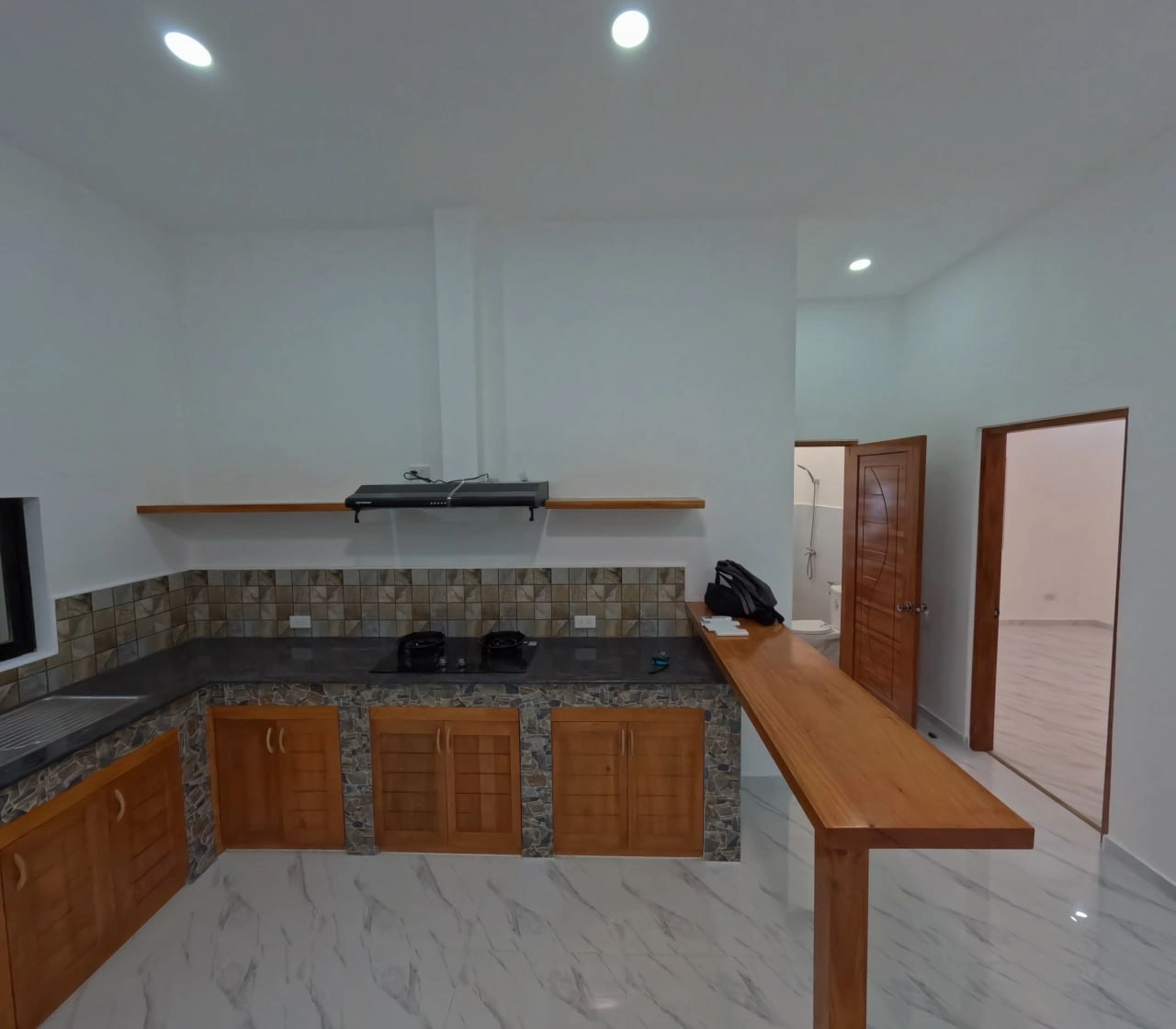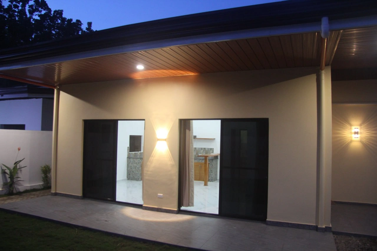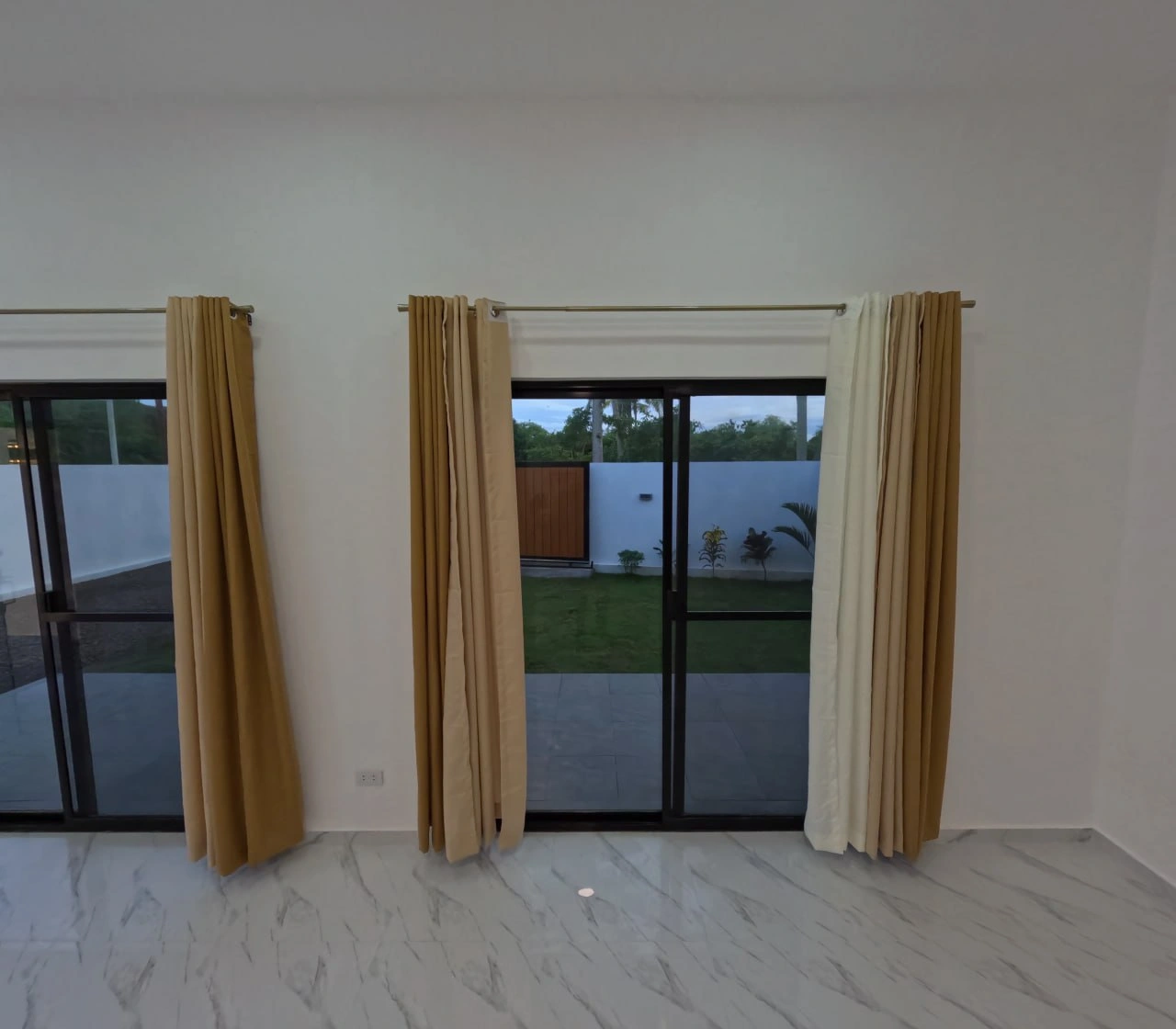 Внутри дом спроектирован с упором на функциональность и комфорт. Просторная, светлая гостиная с современным камином, идеально подходящим для уютных вечеров. Она плавно переходит в современную кухню-столовую, оснащенную встроенной техникой премиум-класса. Высокие потолки и открытая планировка усиливают ощущение свободы и простора. Есть приватная зона для отдыха, где размещены две уютные спальни и две роскошные ванные комнаты. Гостиная оборудована собственной балконом, идеальным для утреннего кофе с видом на восход солнца.